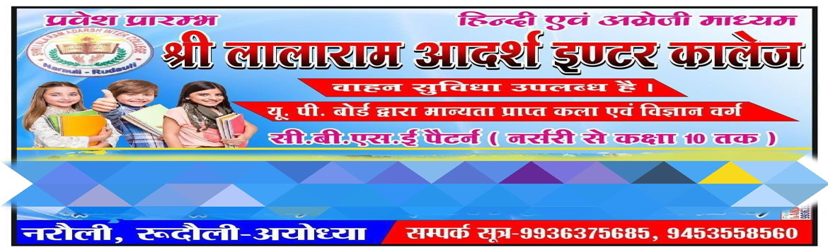 Established in year 2009, SRI LALARAM ADERSH U.M.V , NARUALI is located in Rural area of Uttar Pradesh state/ut of India. In Narauli area of Rudauli block of Faizabad district. Area pincode is 224117. School is providing Secondary Only (9-10) level education and is being managed by Private Unaided Organisation. Medium of instruction is Hindi language and school is Co-educational.